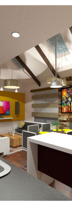 La propuesta busca trabajar sobre lo que permite la normatividad y mantener la intención del cliente. Para lograrlo, determiné el espacio máximo que podía trabajar legalmente. Según la norma aplicada: en la fachada original, puedo empalmar hasta el eje 3 ambos segmentos, y además me permite un voladizo de 60 centímetros máximo. Hecho esto, el espacio se dividió en 2 de la forma mas equitativa y funcionalmente posible. A partir de esto, se organizaron los espacios sociales y se agruparon los espacios de servicio en el centro. Por otro lado, se propone un Ático sobre las zonas de cocinas y baños para lograr un buen apoyo mediante la utilización de una placa ligera en Tubería estructural con el fin de evitar el costo de una licencia de construcción de 4 piso por norma. Finalmente la cubierta la manejamos a 2 aguas y aprovechamos la altura del vértice de las cubiertas para generar un espacio cómodo en la alcoba, y en el desarrollo de las escaleras, sin olvidar ceder el paso de la luz natural mediante ventanas en el techo (lucetas)